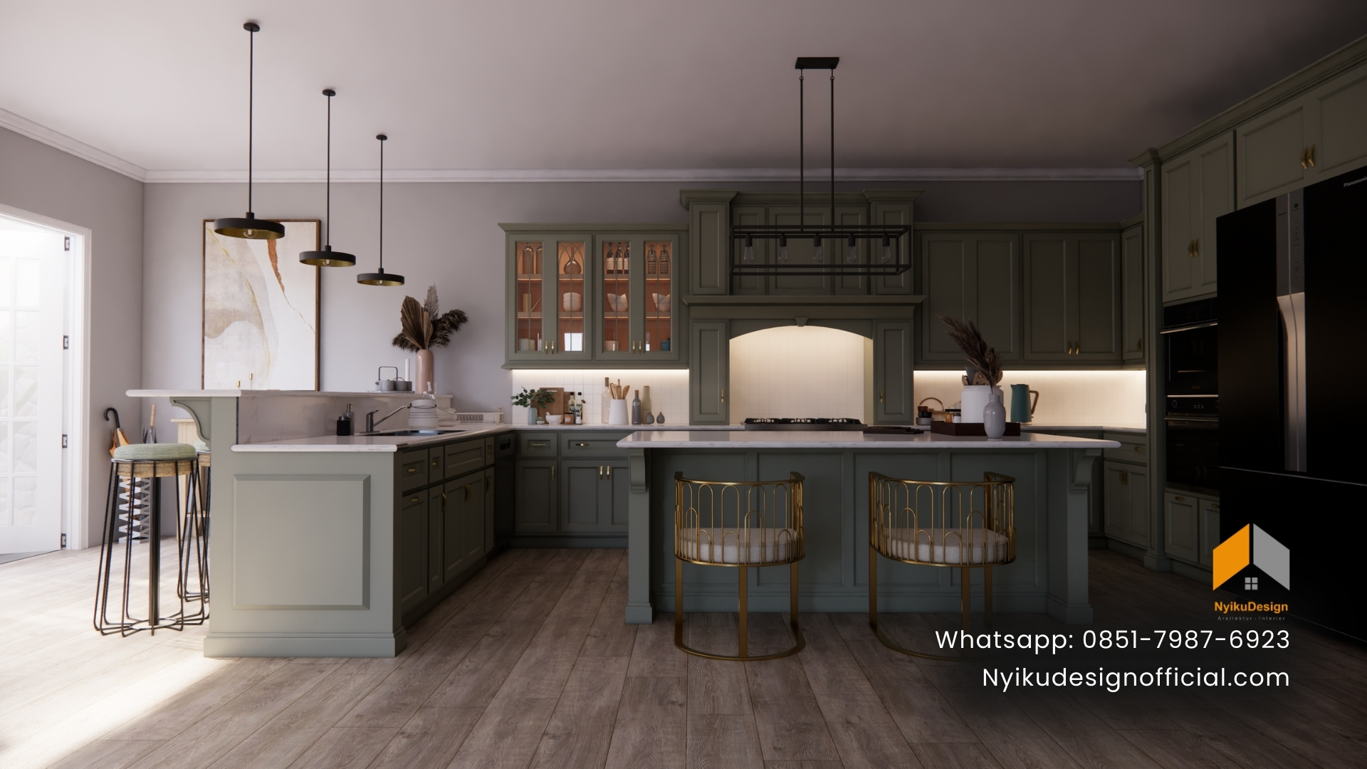 NYIKU DESIGN - Butuh info lengkap Perusahaan Jasa Desain Interior Dapur Klasik Modern yang terpercaya dan Profesional, Harga Jasa Desain Interior yang terjangkau, Rincian Biaya Jasa Desain Interior Dapur Klasik Modern Terpercaya, Alamat Kantor Perusahaan Jasa desain yang berpengalaman dengan kualitas bagus dan harga murah, anda sudah meng-klik website yang benar, kami NYIKU DESIGN merupakan jasa Desain Interior Dapur Klasik Modern yang sudah lama berpengalaman dibidangnya. Hubungi kami di 0813-9505-0525